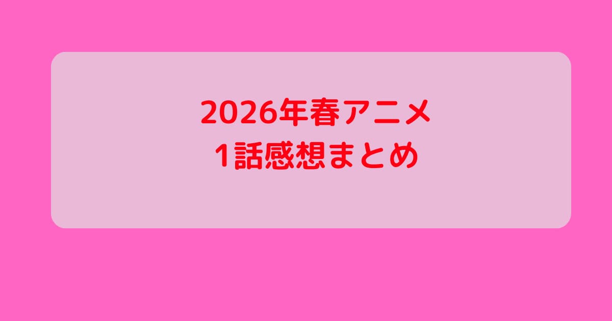 2026年アニメ 2026年春アニメ1話感想まとめ 2026年アニメ 2026.04.042026.04.05 記事内に広告が含まれています。 視聴した2026年春アニメ1話の感想をまとめました。 目次 カナン様はあくまでチョロい逃がした魚は大きかったが釣りあげた魚が大きすぎた件また殺されてしまったのですね、探偵様春夏秋冬代行者 春の舞メイドさんは食べるだけ魔物喰らいの冒険者~俺だけ魔物を喰らって強くなる~ スポンサーリンク カナン様はあくまでチョロい カナン様はあくまでチョロい 第1話「カナチョロ」感想とあらすじテンポがよくて面白い。食べようとして逆に食べられそうになるの面白すぎ。人間を下等生物と見下ろしていても、供犠クンが来ると急に可愛くんなるのチョロすぎ。並んで歩いてドキドキで汗だくなの可愛い。紐で束縛されても引かないで間と勘違いする供犠クン強... 逃がした魚は大きかったが釣りあげた魚が大きすぎた件 逃がした魚は大きかったが釣りあげた魚が大きすぎた件 第1話「逃がした魚は優良物件を探す」感想とあらすじ主人公が面白い女過ぎて好き。弟を思いやるいい姉なのもいい。家族のためにいい相手を自分からさがす展開って意外と珍しいのでは、、、?元気で良い子すぎる殿下がいい人過ぎていい。めぼしい相手を見繕ってくれるの笑える。人違いで婚約破棄されるの面白すぎ... スポンサーリンク また殺されてしまったのですね、探偵様 また殺されてしまったのですね、探偵様 第1話「クイーン・アイリィ号殺人事件・前編」感想とあらすじ可愛い女の子がいると思ったら男の服の匂いを嗅ぐ変態で草。サーカスを見て怯える主人公。今まで敬語だったが「大丈夫?」とタメ口で心配するのいい。主人公は刃物が苦手なのでしょうか、、、?刺される主人公。なんで生きてるのか、、、?次回その謎が分かる... スポンサーリンク 春夏秋冬代行者 春の舞 春夏秋冬代行者 春の舞 第壱話「春の舞」感想とあらすじ1話を見てめちゃくちゃ惹かれるというものはありませんでした。とはいえ、1話では説明しきれていない裏事情がたくさんあるので、とりあえずは視聴を継続していこうと思います。感想語りの優しげな口調がとても心地良い。1話は全体的に重めな雰囲気。急に叫... メイドさんは食べるだけ メイドさんは食べるだけ1食目「たい焼き/たこ焼き/お団子/コンビニおにぎり/バウムクーヘン」感想メイドさんの声が可愛い。屋敷の倒壊理由が屋上にプールを作ろうとしたからなの笑えます。たい焼きたい焼きを頭から食べるのをためらって尻尾から食べるの可愛い。天然たい焼きって、浅草に行ったときに見たことがあったあったけれど作り方が違ったとは知... 魔物喰らいの冒険者~俺だけ魔物を喰らって強くなる~ 魔物喰らいの冒険者~俺だけ魔物を喰らって強くなる~ 第1話「瘴気漁り」感想とあらすじ・評価全体的にテンポが悪くて眠くなった。ショートアニメって店舗の良さが売りだと思っていたんですが、、、内容も次が見たいと惹かれる部分も特になく、、、タイトルの魔物を喰らって強くなるの部分を感じられたらもっと違ったのかもしれませんが、、、とりあえず...